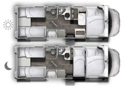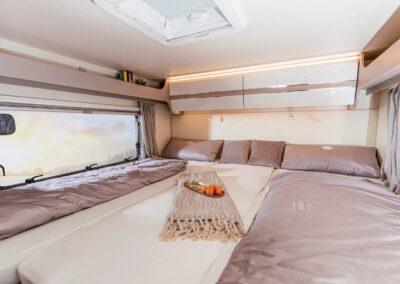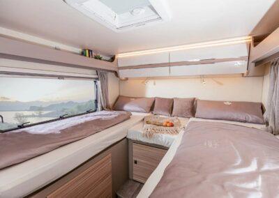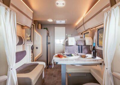 La gama Canada viene de serie con ventanas con marco Polyvision, pisos, paredes y techos de PRFV, inodoro tipo cassette y refrigerador Thetford, calefacción de gas Truma y claraboyas Heki. Además, en los vehículos se instalan componentes de calidad del fabricante Tecnoform, así como bisagras de cierre suave de Blum. Todas las luces LED pueden atenuarse y controlarse individualmente mediante un sistema electrónico. Esto asegura un ambiente de iluminación adecuado en todo momento. El aspecto de mármol de la mesa y las encimeras de la cocina también realza el espacio habitable.El más alto nivel de comodidad gracias a la ergonomía y la calidad de la tapicería de los asientos y los colchones.